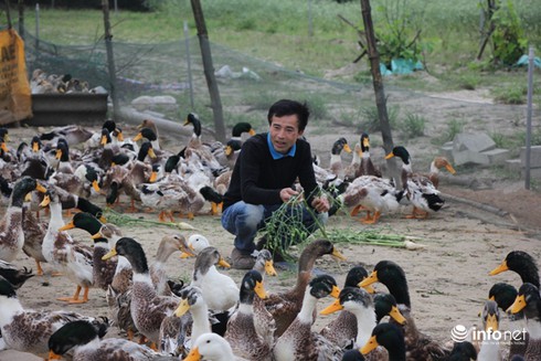 Anh Lê Hữu Thảo đang cùng người bạn làm trang trại chăn nuôi vịt biển và trồng các loại hoa màu. |