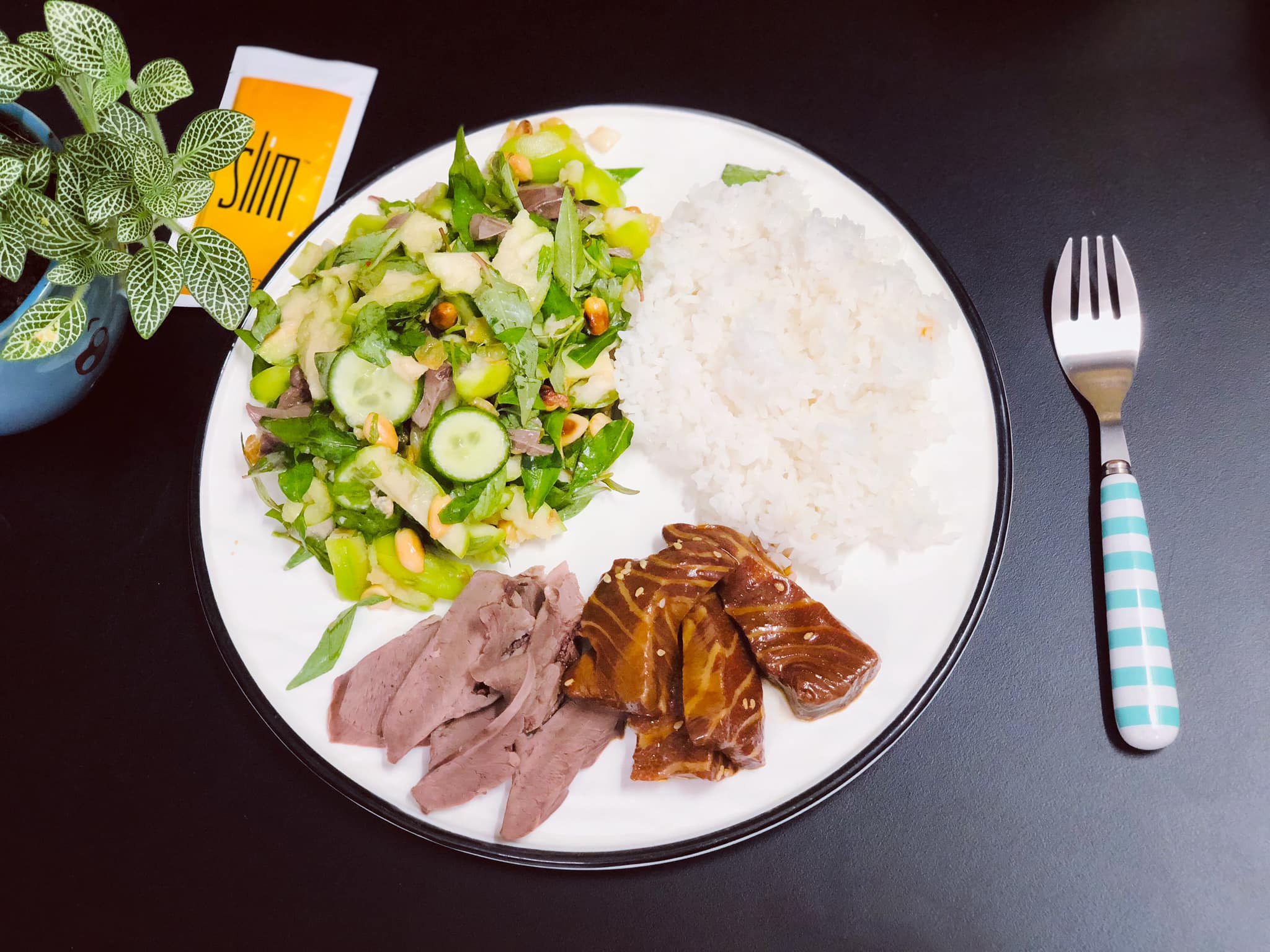 Về những đĩa cơm healthy, thường thì mình tự chọn thực đơn mình thích, kết hợp theo tỉ lệ rau, đạm, tinh bột, chất béo tốt”, chị Quỳnh chia sẻ.