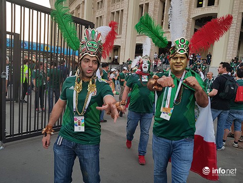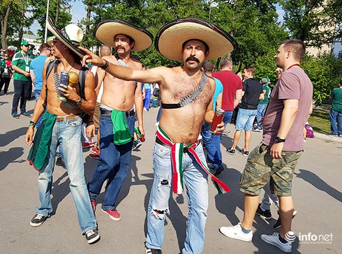 Có mặt tại sân chơi World Cup 2018 diễn ra trên xứ sở bạch dương, PV báo điện tử Infonet đã trực tiếp ghi nhận hình ảnh những bộ trang phục vô cùng “đặc biệt và… quái dị” mà người dân nhiều xứ khác có lẽ còn chưa dám nghĩ đến chứ đừng nói là khoác lên mình, bước vào ngày hội lớn của thế giới với tràn đầy niềm tự hào và sức thu hút như người dân xứ Mễ Tây Cơ: