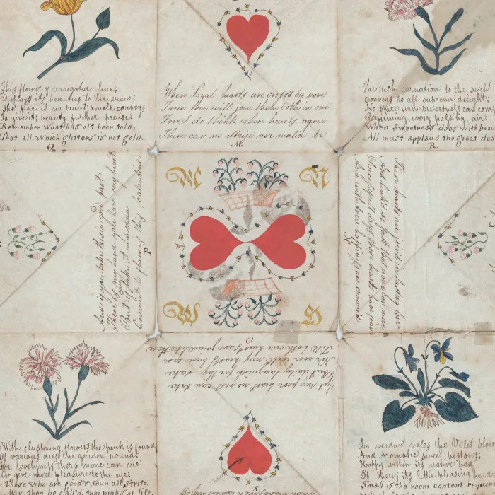 Vào thế kỷ 18 tại Anh, những câu đố thể hiện tình cảm là một trong những món quà Valentine phổ biến nhất. Câu đố này là một văn bản được chia thành nhiều phần, viết trên một tờ giấy được gấp một cách khá phức tạp.