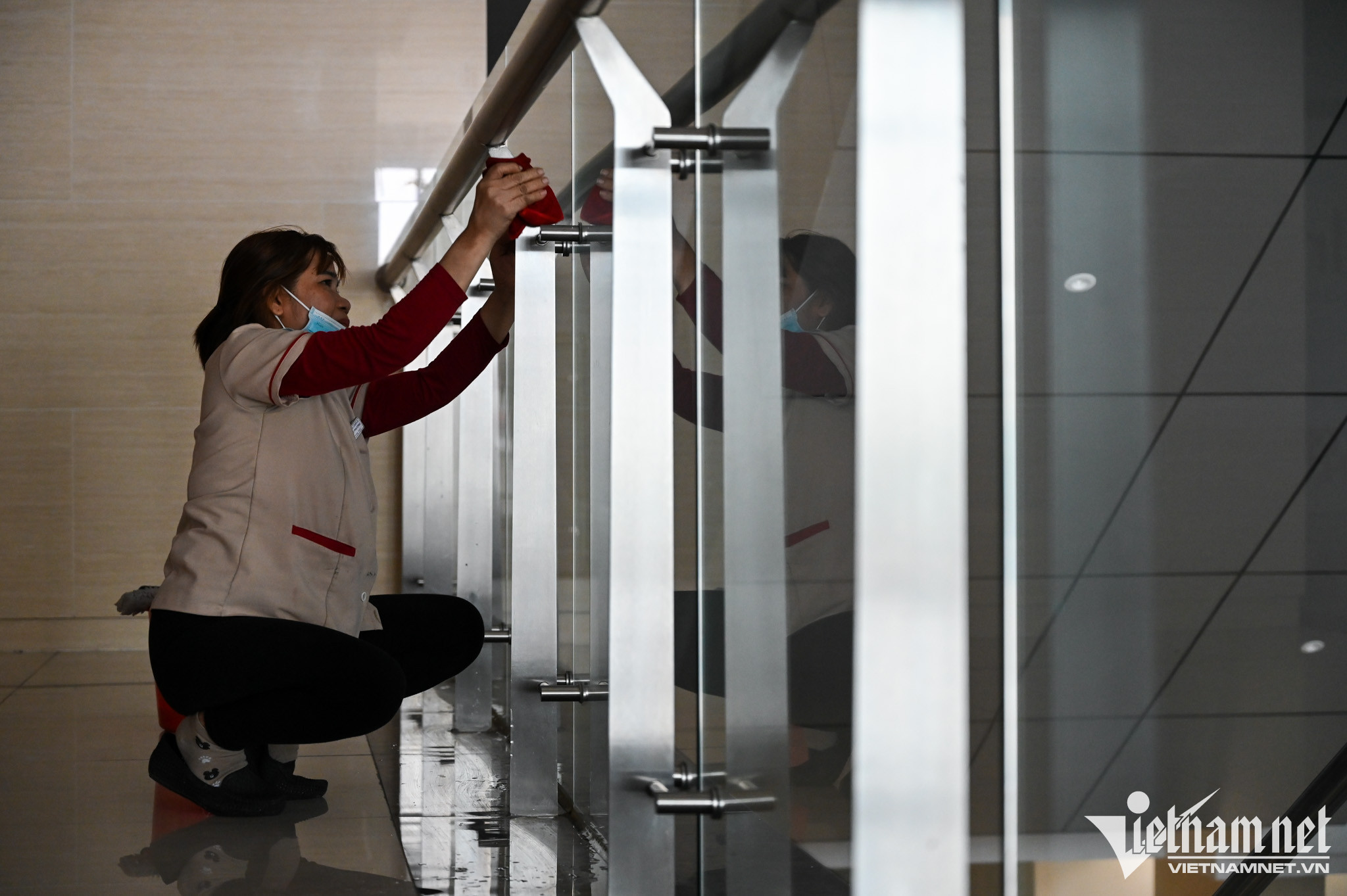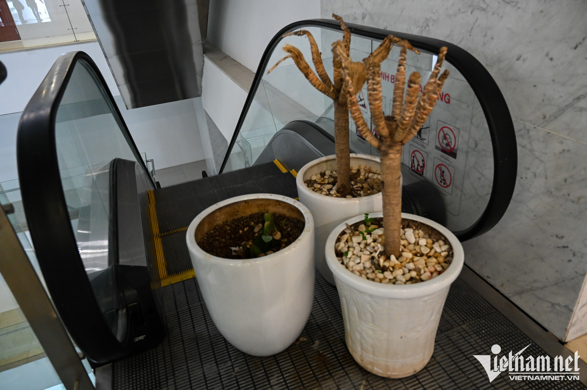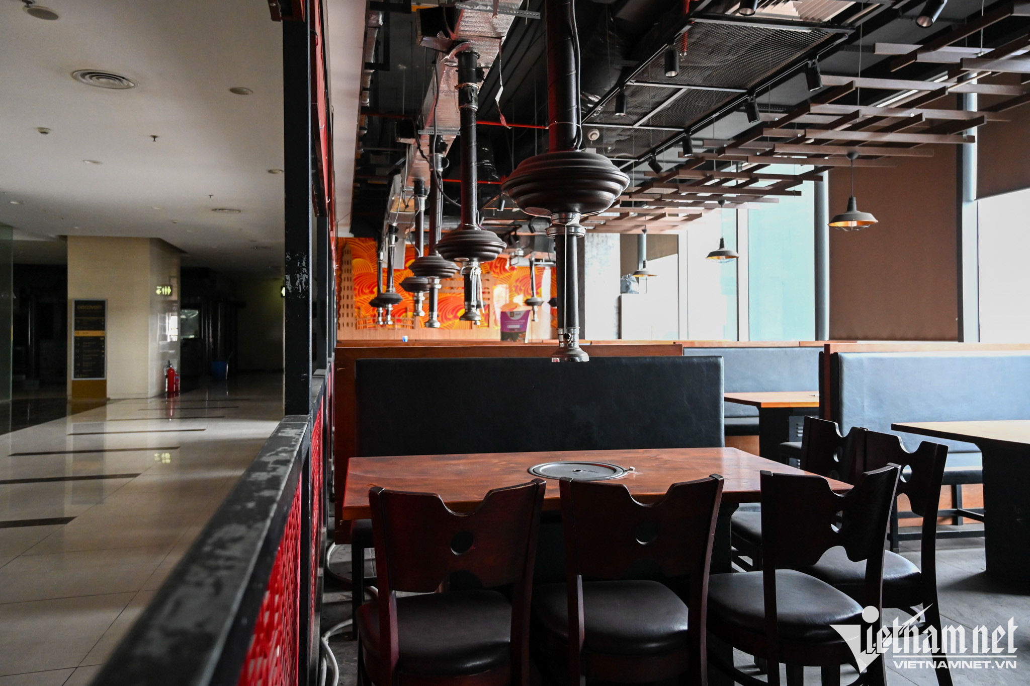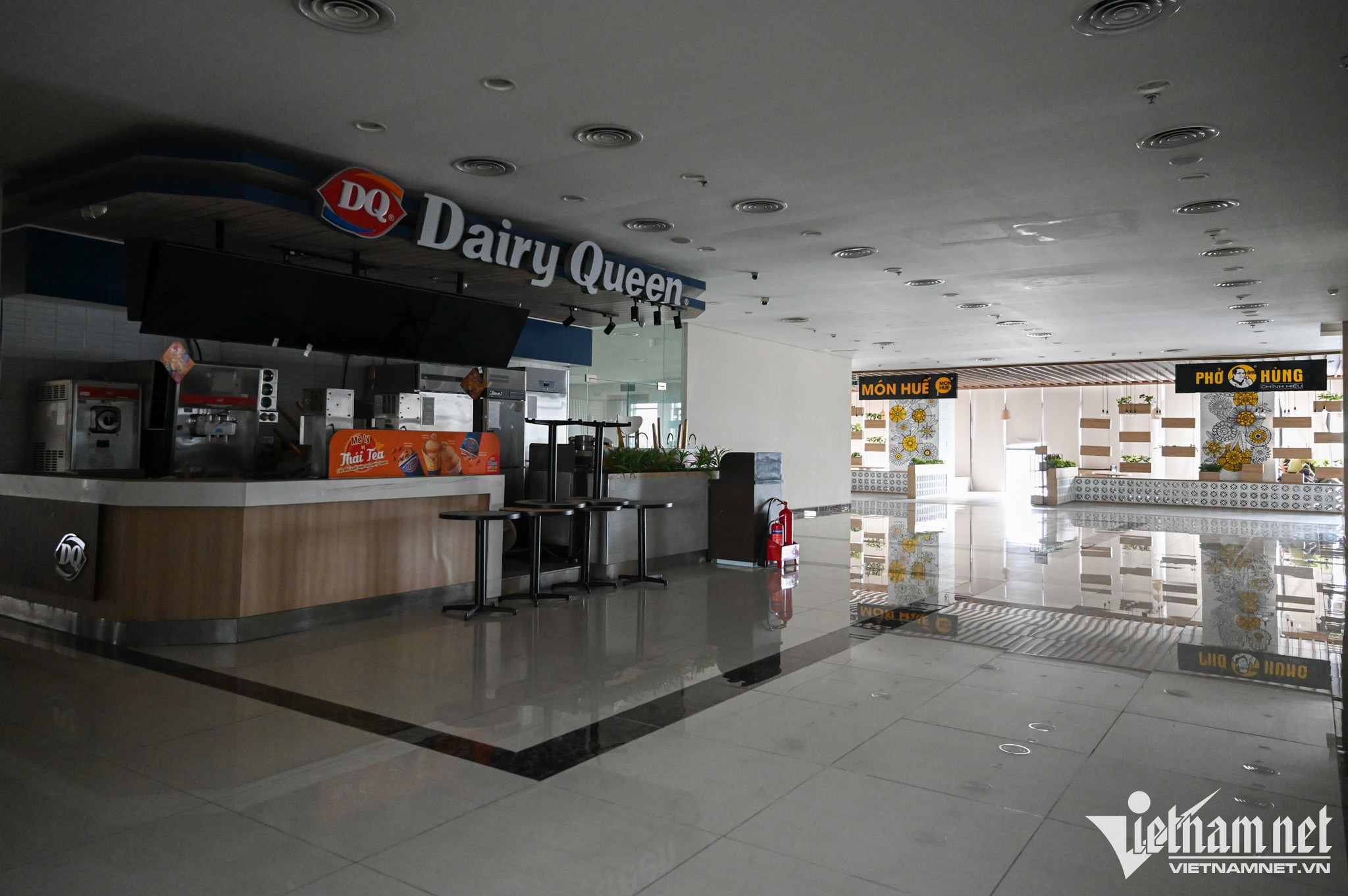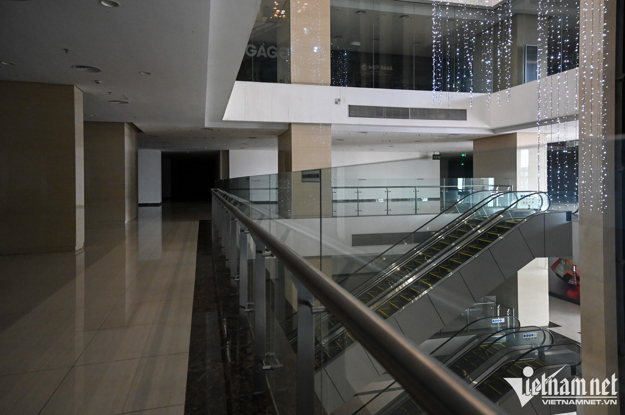 Thang máy tại các tầng 4, 5, 6 cũng không hoạt động. Tầng 5 của tòa nhà từng được phủ kín bởi các thương hiệu ăn uống, nhà hàng cao cấp thu hút giới trẻ cũng như các gia đình đến thưởng thức ẩm thực, nay không còn bất kỳ gian bếp nào hoạt động.Hiện tại đa phần khách đến TTTM này để đi mua sắm tại siêu thị ở tầng 1 và xem phim tại tầng 8.Một nữ lao công cho biết, các gian hàng hầu như đóng cửa hết từ năm 2020 cho đến nay. "Trước khi xảy ra đại dịch Covid-19, nơi đây lúc nào cũng tấp nập đông vui mà giờ nhìn cảnh vắng vẻ này tôi thấy buồn lắm", người phụ nữ chia sẻ.