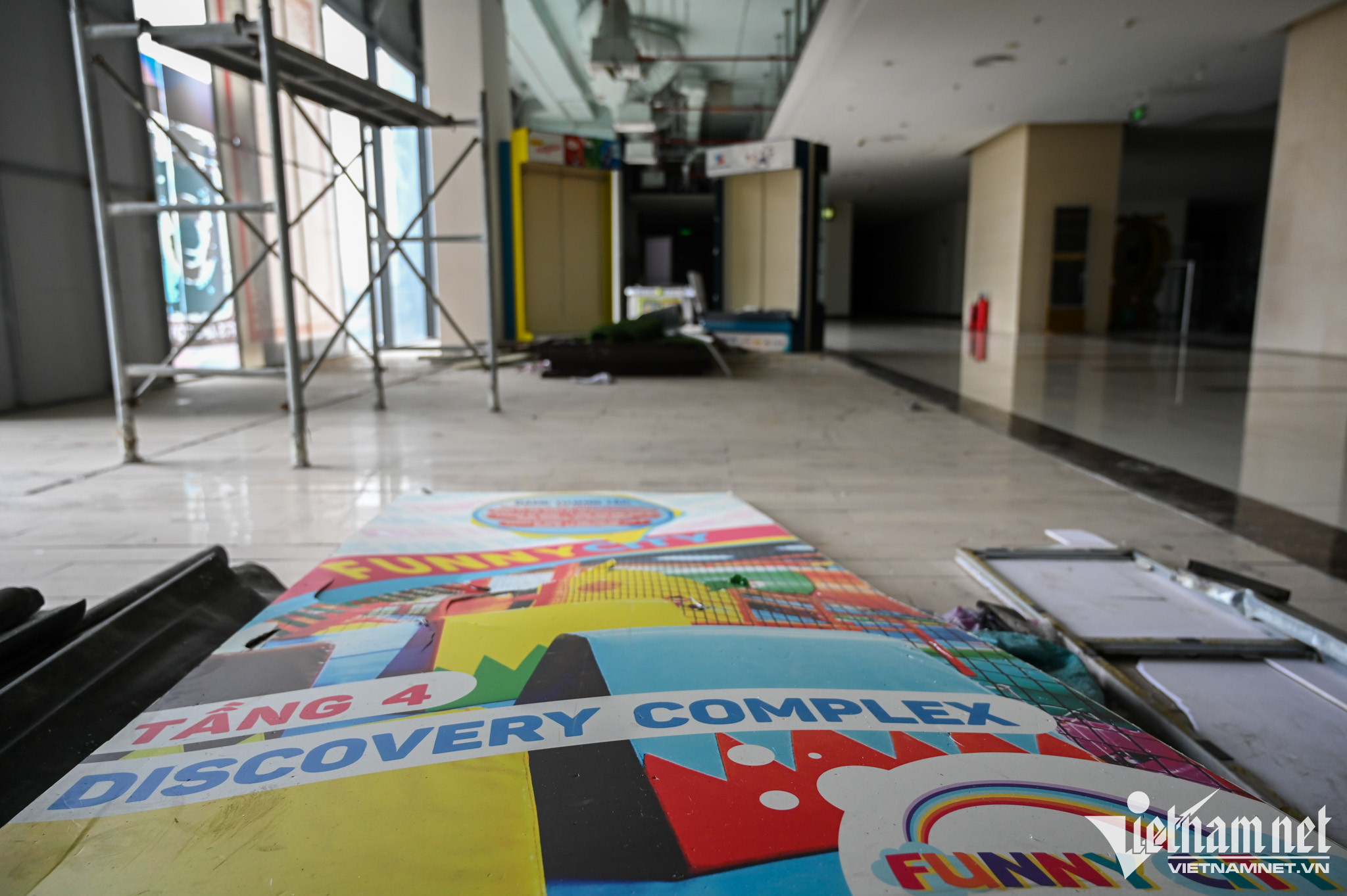 Trung tâm thương mại (TTTM) Discovery Complex (quận Cầu Giấy) từng là điểm đến hấp dẫn, náo nhiệt nhưng hiện luôn trong cảnh hoang vắng, nhiều tầng lầu không còn dấu hiệu hoạt động kinh doanh.TTTM nằm ngay mặt đường Cầu Giấy có 8 tầng với các khu thời trang, nội thất, ẩm thực, vui chơi giải trí… riêng biệt. Tuy nhiên, lúc này nhiều gian hàng bị bỏ trống, bên trong khá ngổn ngang.Tại tầng 2 chỉ còn 2 gian hàng kinh doanh thời trang nam, phụ kiện nhưng rất vắng khách vào xem. Nhiều gian hàng vẫn còn nguyên hàng hoá, kệ tủ… cửa khoá then cài trong giờ hành chính.Riêng tầng 4, 5 và 6 dừng hoạt động hoàn toàn, thang cuốn nghỉ vận hành, các dãy hành lang tối thui, không có người qua lại.