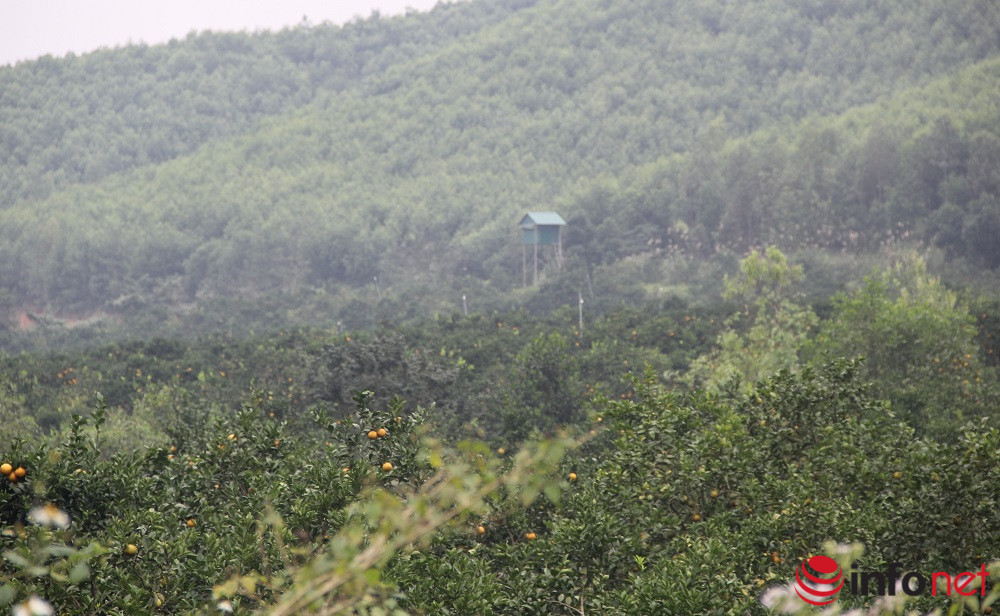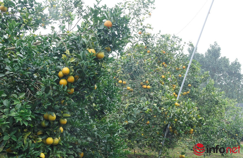 Nhờ có kỹ thuật chăm sóc tốt, những gốc cam của trang trại anh Tiến nặng trĩu quả, đã chuyển màu vàng óng trông rất bắt mắt.