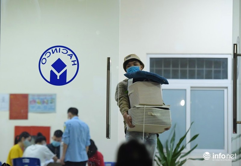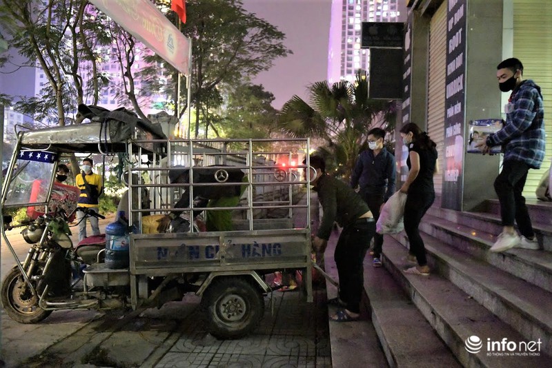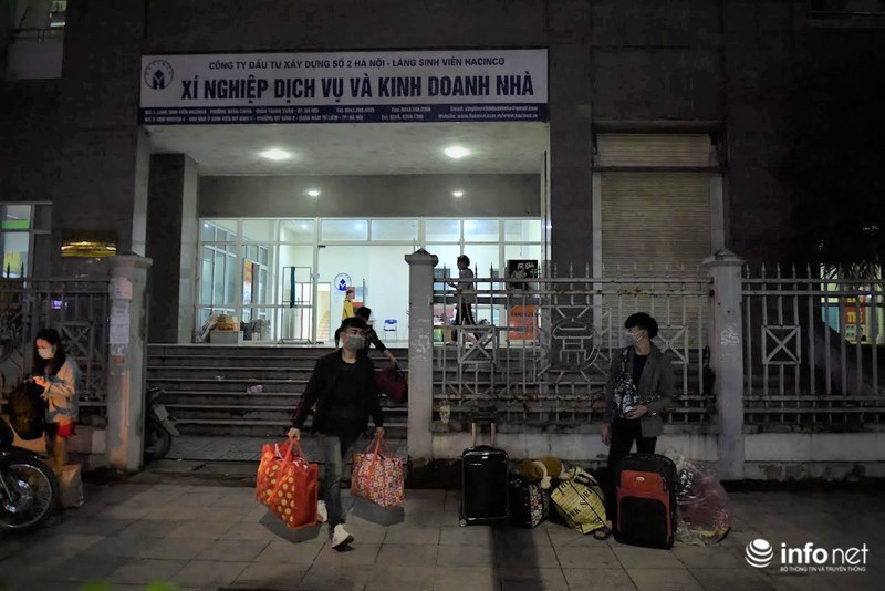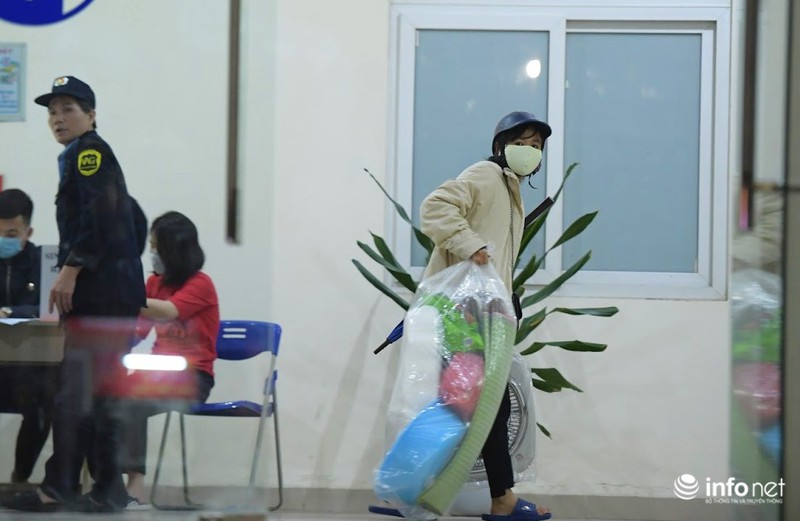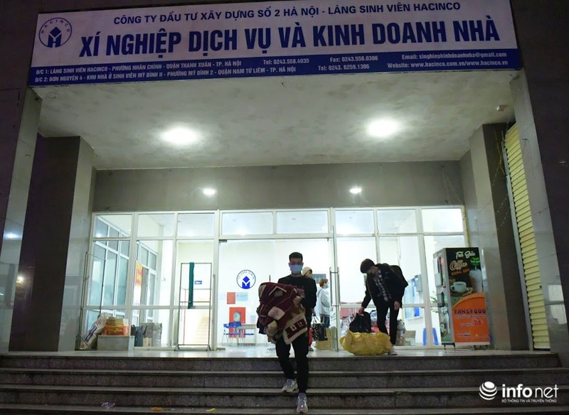 Dưới đây là hình ảnh PV ghi nhận tại khu ký túc xá Mỹ Đình II (phường Mỹ Đình II, quận Nam Từ Liêm, Hà Nội) lúc tối muộn hôm qua (19/3), các bạn sinh viên tập trung làm thủ tục "chuyển nhà", hối hả "tay xách nách mang" di chuyển đồ đạc đến tận đêm muộn.