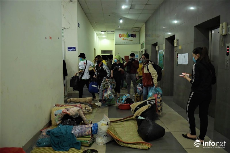 Theo ghi nhận của PV, vào 22h ngày 19/3, đông đảo sinh viên có mặt tại sảnh các tòa nhà đơn nguyên 3,4,5 để làm thủ tục chuyển đi.