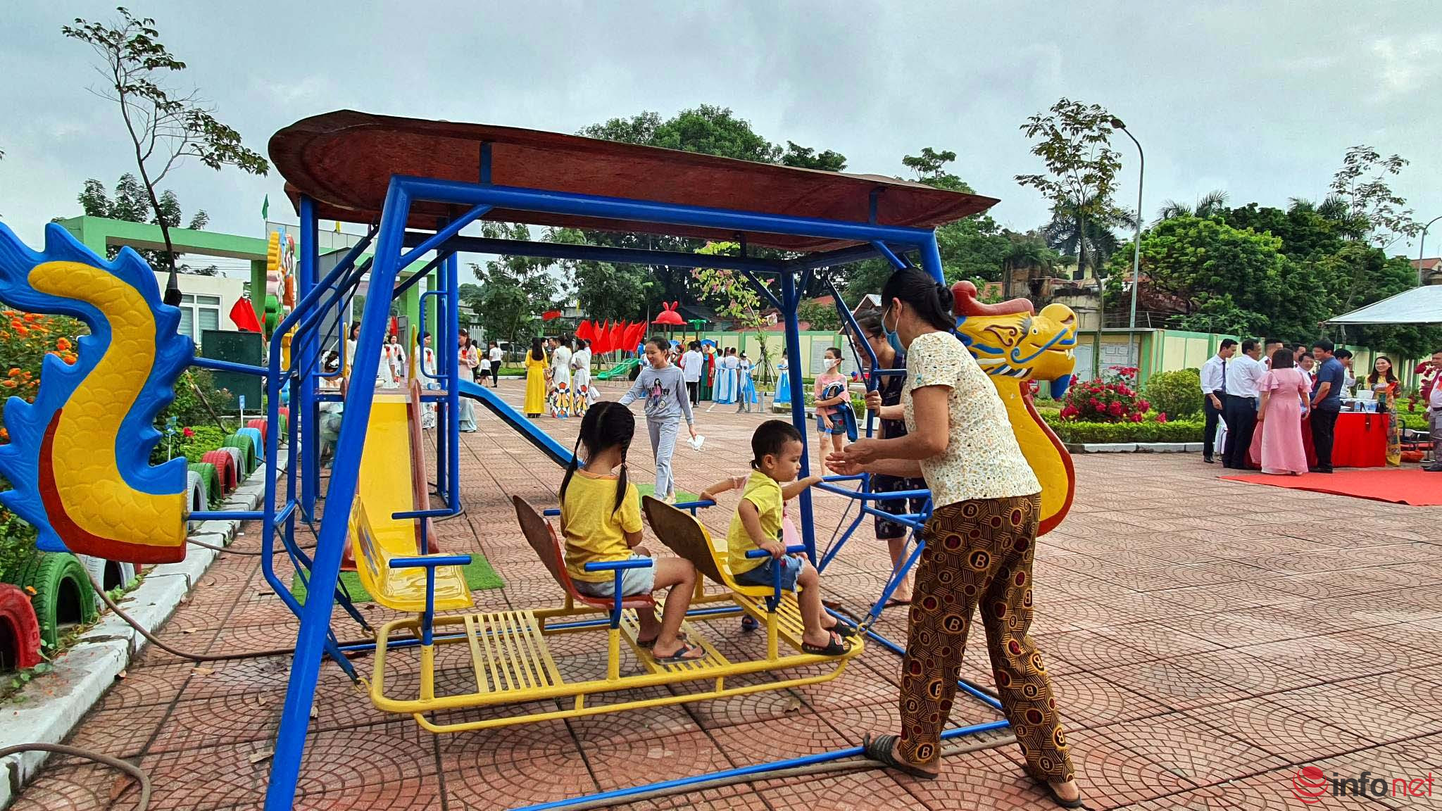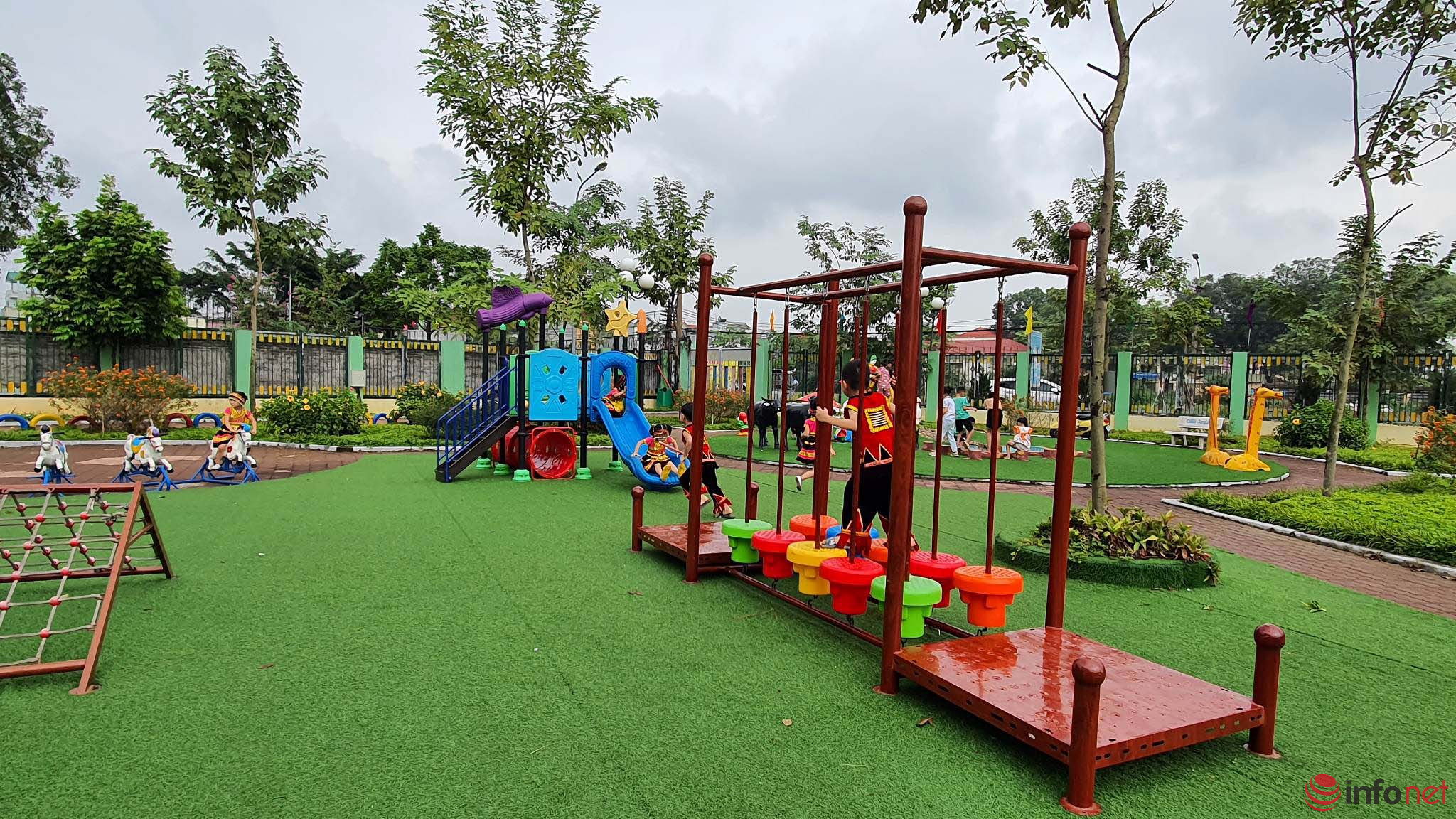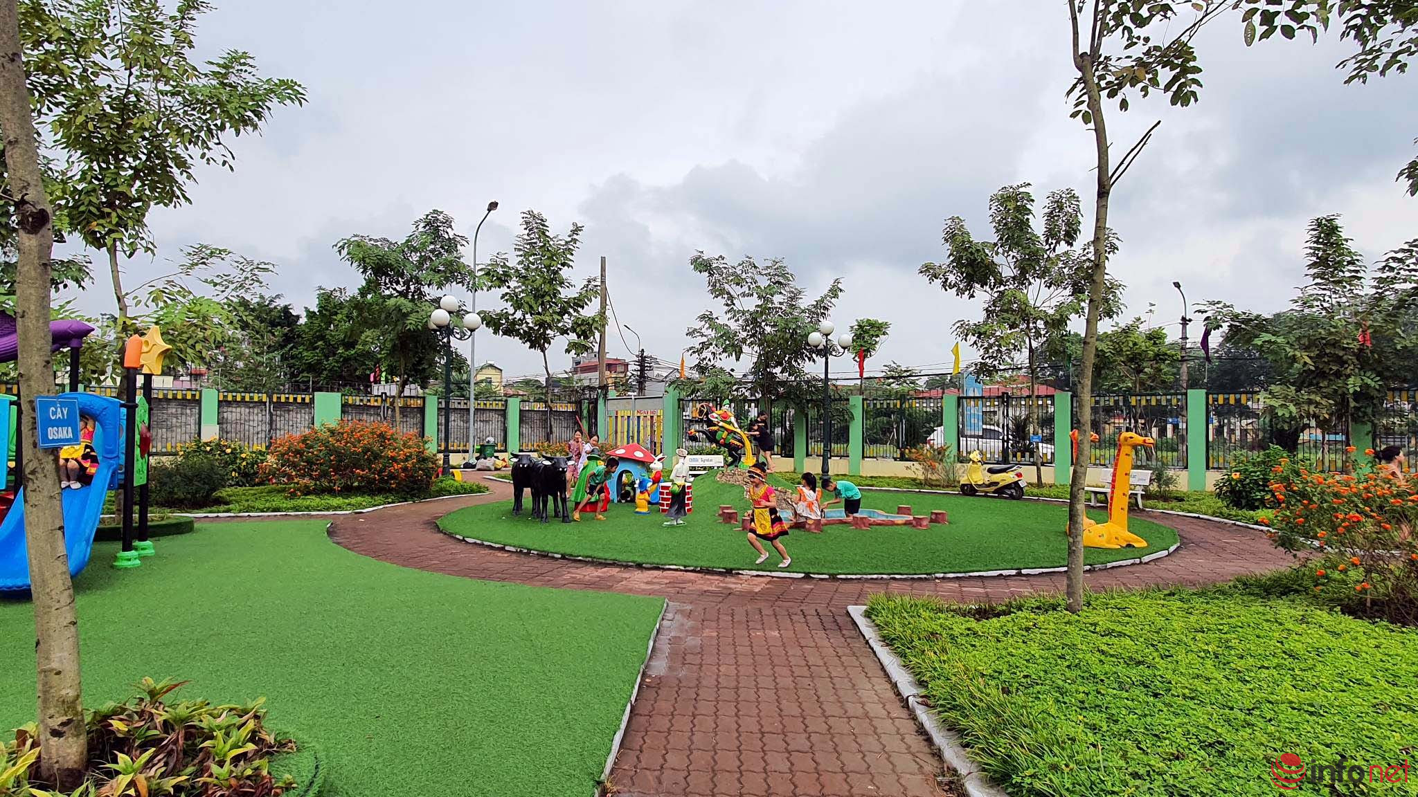 Tiếp đến là khung cảnh sân trường xanh - sạch - đẹp, có cây ăn quả, cây bóng mát, vườn hoa cây cảnh, có khu vườn cổ tích, khu vườn rau sạch cho trẻ trải nghiệm. Đồ dùng đồ chơi ngoài trời cũng được trang bị đầy đủ theo hướng hiện đại", bà Ngọc Lan chia sẻ thêm.