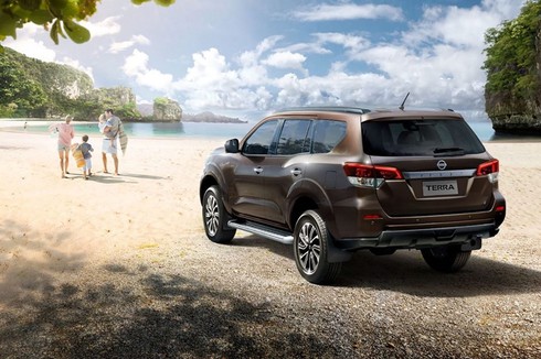 Phần đuôi xe của một mẫu SUV dựa trên bán tải thường đối mặt với thách thức về thiết kế rất lớn. Tuy nhiên Nissan Terra giải quyết rất tốt điều này. Cụm đèn hậu dạng LED khá bắt mắt với thiết kế vuốt chếch lên trên, kết hợp các đường gân tạo nên sự đồng bộ với thiết kế V-Motion ở đầu xe.
