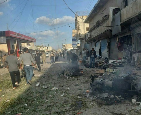 Khung cảnh vụ nổ bom ở Tel Abyad ở Syria. |
