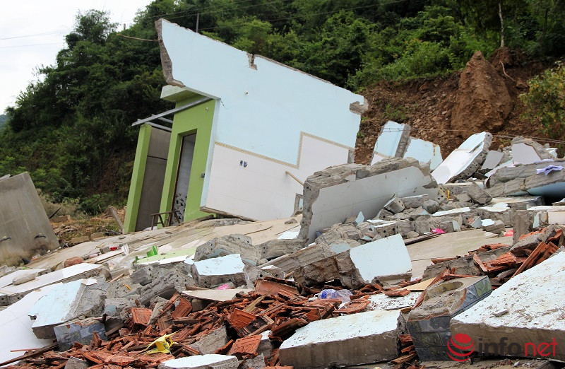Cô giáo kể lại, khoảng 8h ngày 2/10, khi phát hiện đất lún, nhà bị nứt nẻ, ngói rơi…, cô vội bế con nhỏ 4 tuổi sang nhà hàng xóm để gửi, khi quay lại để lấy ít đồ sinh hoạt hàng ngày thì không kịp nữa. Căn nhà bị đổ sập toàn bộ, chắn ngang tuyến tỉnh lộ 543D.