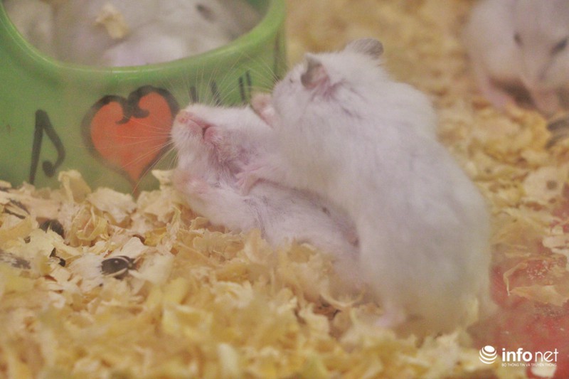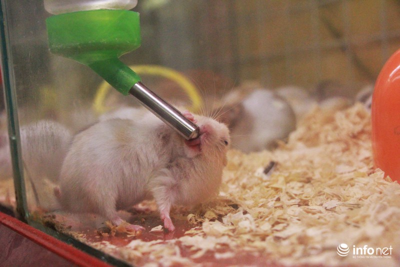 Một nhân viên tại cửa hàng bán chuột Hamster trên đường Nguyên Hồng (Đống Đa, Hà Nội) cho biết: Sang năm là năm chuột nên số người đến hỏi mua đông hơn mọi khi. Đa số người mua đều là các em học sinh hoặc bố mẹ các bé dẫn các em tới tham quan rồi chọn mua. |