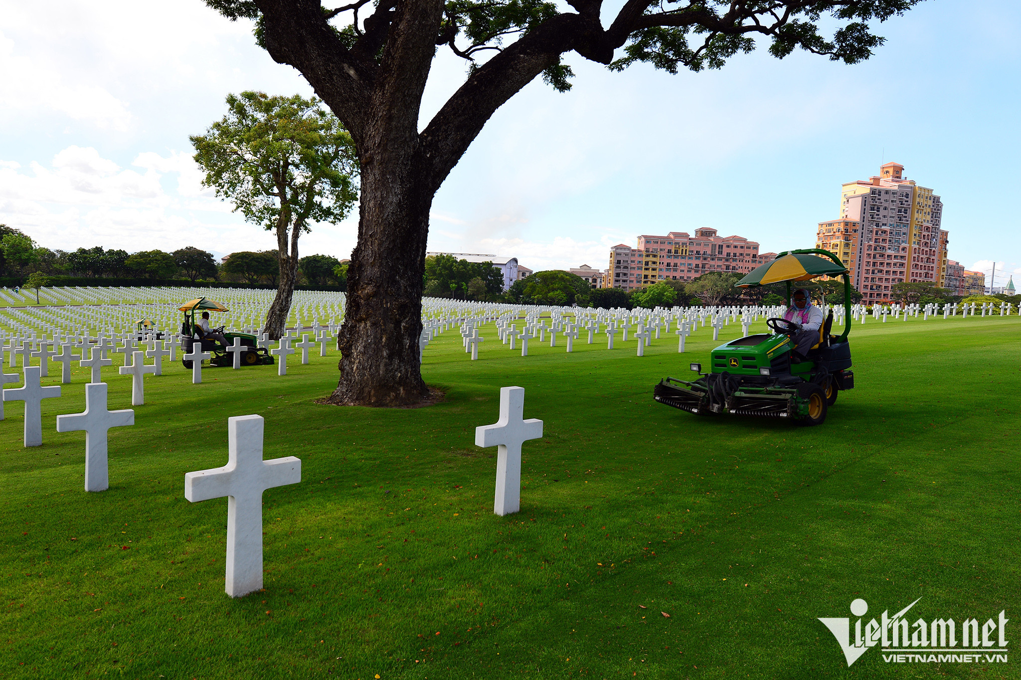 Mỗi một ngôi mộ bên trong nghĩa trang chôn cất binh sĩ Mỹ và Philippines ở Manila đều được gắn một cây thánh giá bằng đá cẩm thạch trắng, xếp thành hình vòng cung, tạo cảm giác lạ lẫm cho du khách.