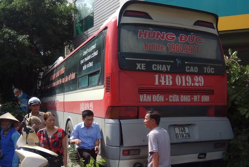 Sau đó xe khách lao thẳng lên vỉa hè, đâm tiếp vào một số xe máy dựng xen đường rồi húc vào nhà dân mới dừng lại.
