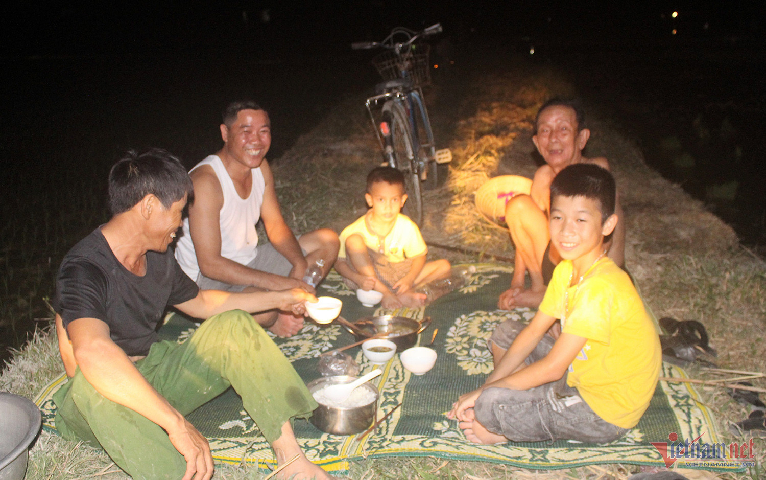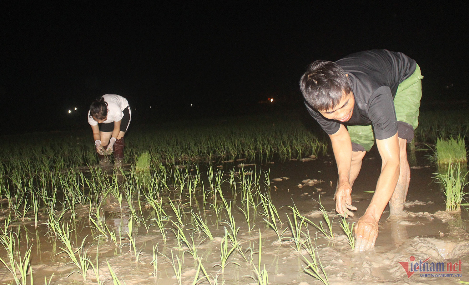 Nông dân ăn cơm giữa đồng, soi đèn cấy lúa xuyên đêm tránh nắng nóng