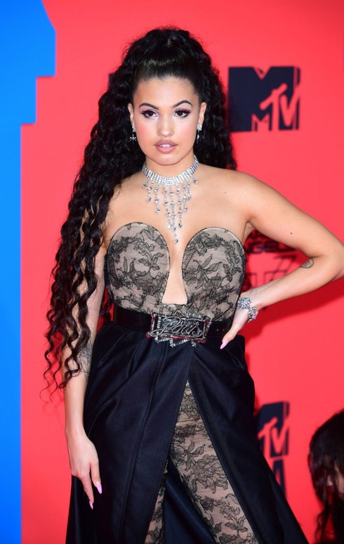 Giọng ca 23 tuổiMabel diện bộ đồ hở bạo và mái tóc xoăn dài khiến cô trông già hơn tuổi |