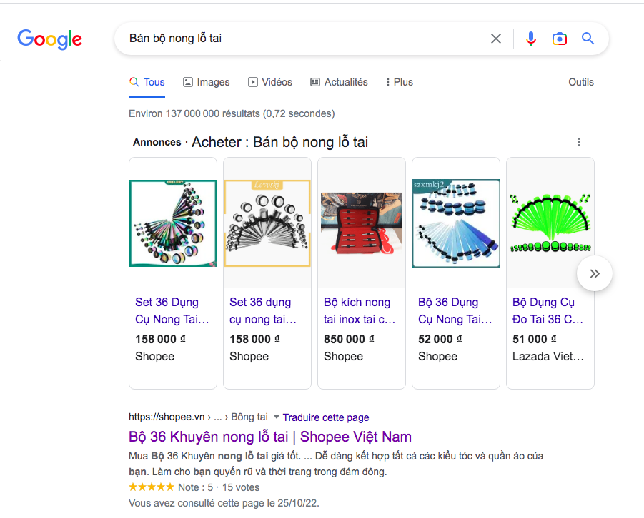 Đáp ứng nhu cầu của các 'thượng đế' trẻ, rất nhiều dụng cụ nong tai được bán sẵn trên chợ mạng. Chỉ cần vào google gõ từ khoá “bán dụng cụ nong tai” đã cho kết quả hơn trăm triệu lượt tìm kiếm, giá từ mấy chục ngàn cho đến vài trăm ngàn/bộ nong tai với các kích cỡ từ 4mm cho đến 18mm.