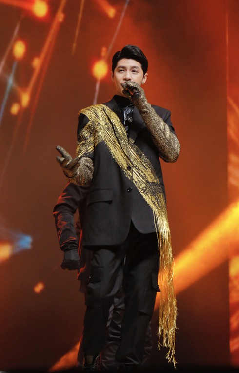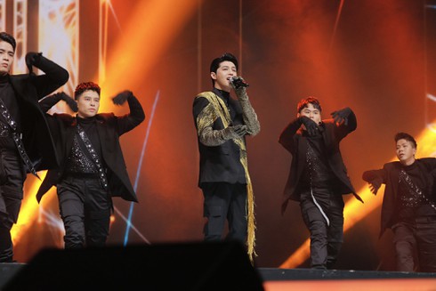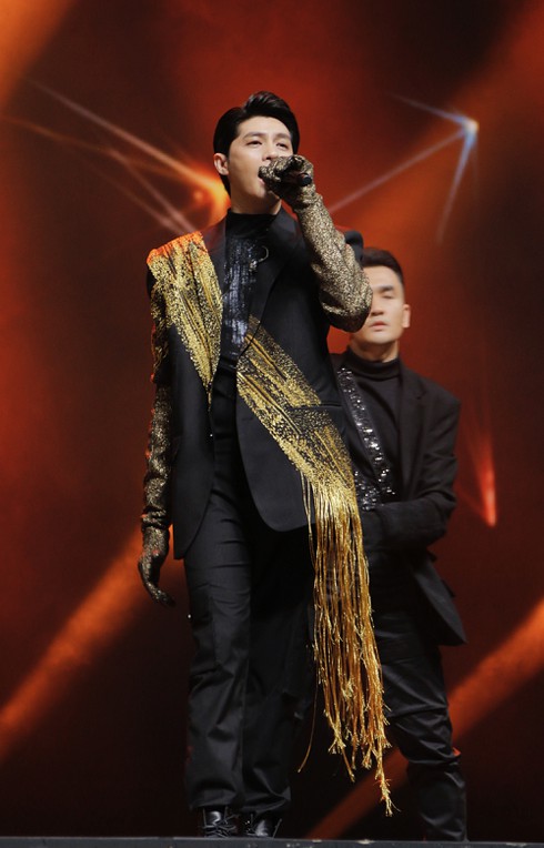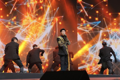 Sau đó vào lúc 19h30 (giờ Hàn Quốc), Noo Phước Thịnh đã có mặt trên sân khấu chính chương trình trong tiếng reo hò của khán giả. Anh diện cho mình bộ vest đen lịch lãm của NTK Lưu Ngọc Kim Khanh với điểm nhấn là dây choàng nhũ vàng được đính vào đồng bộ với găng tay.