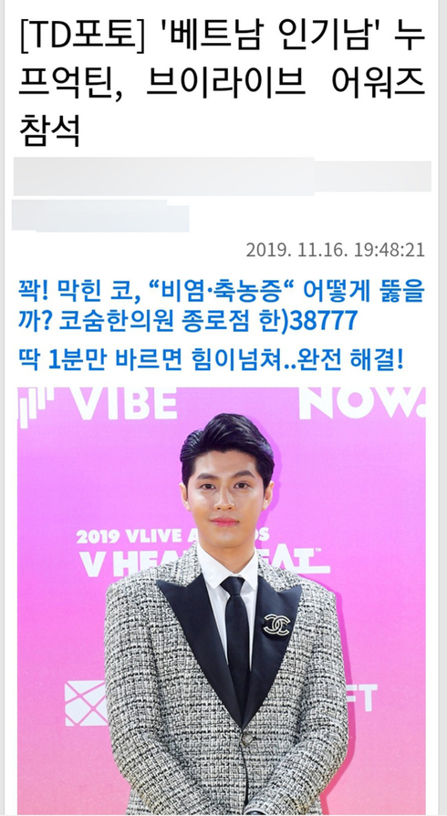 18h30 (giờ Hàn Quốc) ngày 16/11, Noo Phước Thịnh cùng dàn sao Kpop đã xuất hiện trên thảm đỏ của sự kiện "2019 VLIVE AWARDS V HEARTBEAT" diễn ra tại sân vận động Gocheok Skydome (Hàn Quốc) vưới sức chứa 25.000 khán giả.