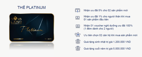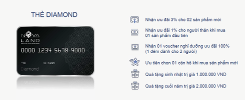 Chương trình với các hạng thẻ Titanium, Gold, Diamond, Platinum dành cho khách hàng thân thiết đã giao dịch và hạng thẻ Member dành cho tất cả các khách hàng mới đang quan tâm và tìm hiểu các sản phẩm của Novaland.