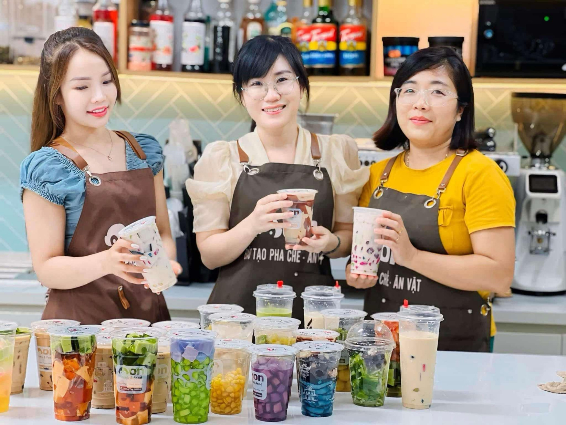 Chị chưa từng được đi học nghề pha chế, chế biến đồ ăn vặt. Những công thức trà sữa, trà trái cây, đồ ăn vặt của quán đều do chị tự học hỏi, sáng tạo.