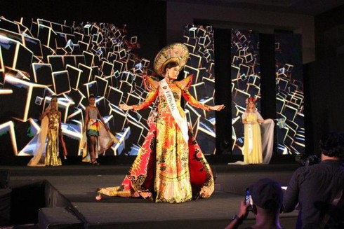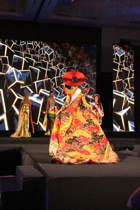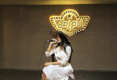 Trước phần thi chung kết, nữ ca sĩ Việt cùng các thí sinh trong phần thi áo tắm được tổ chức nội bộ trong khuôn viên khu vực hồ bơi khách sạn (do đa phần người ở Dubai theo đạo Hồi nên trang phục này không được đưa vào phần thi trên sân khấu vào đêm thi chung kết).