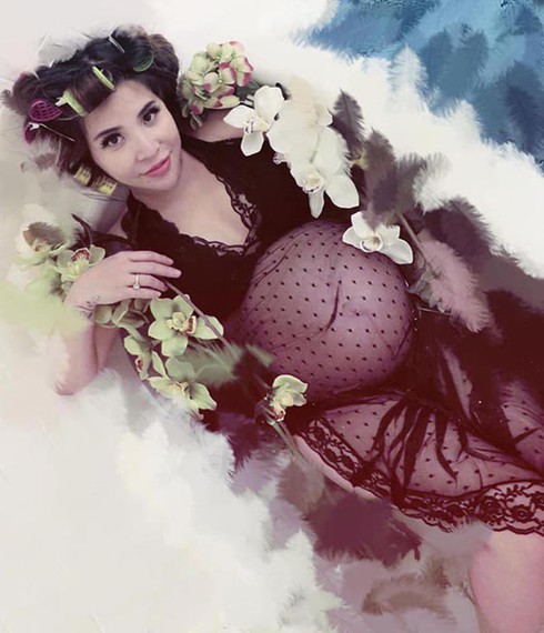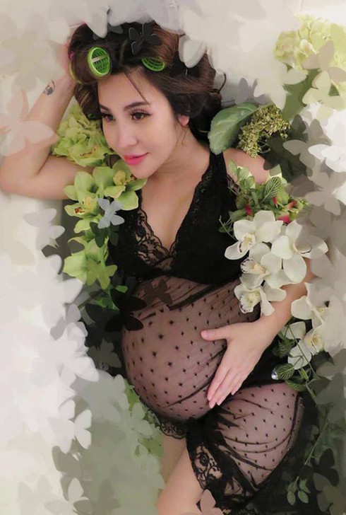 Khi mang bầu con đầu lòng, Thúy Khanh thoải mái chụp ảnh sexy.
