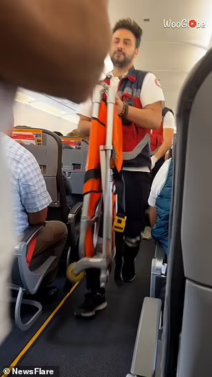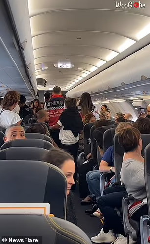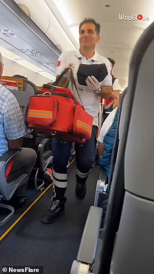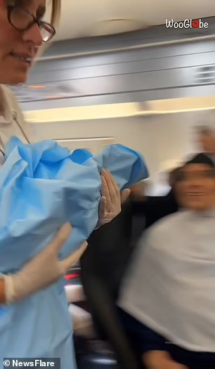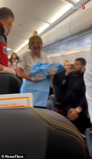 Video cho thấy các nhân viên y tế đang lao lên máy bay để giúp đỡ bà mẹ tương lai cùng với đó là những hành khách phấn khích nghểnh cổ lên để xem chuyện gì đang xảy ra và trò chuyện hào hứng.