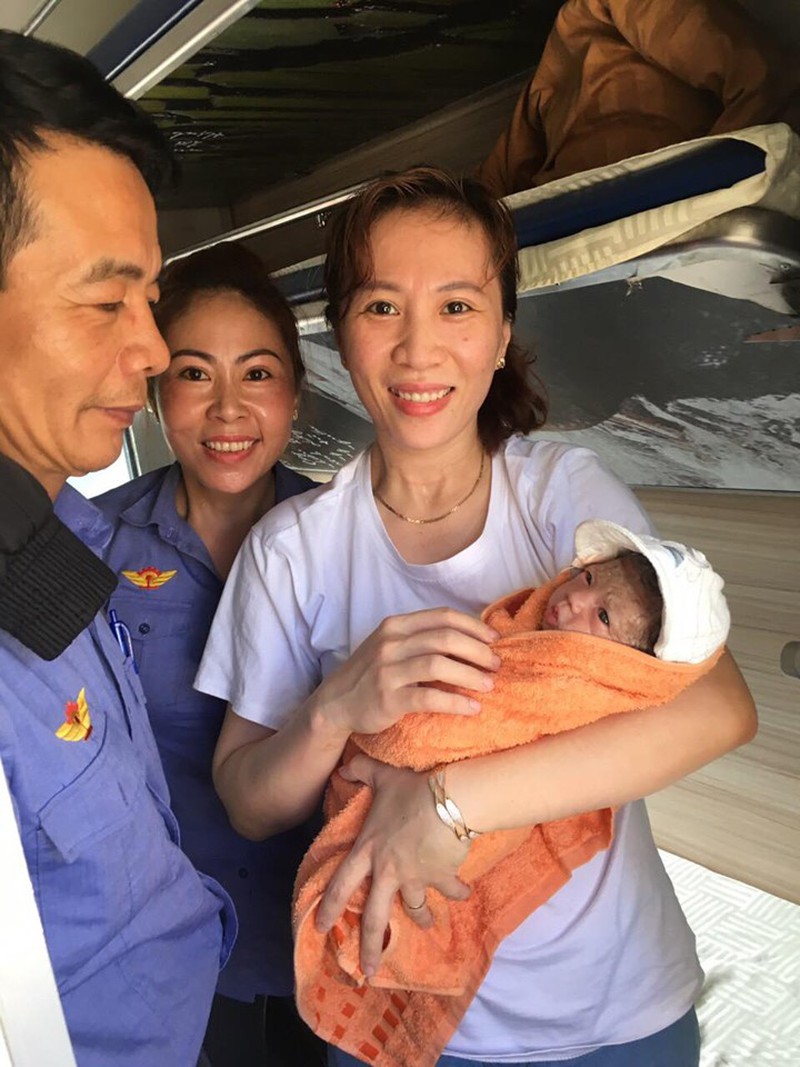 Sau khi sinh hạ thành công trên tàu SE12, mẹ con sản phụ đến bệnh viện để các bác sĩ chăm sóc. |