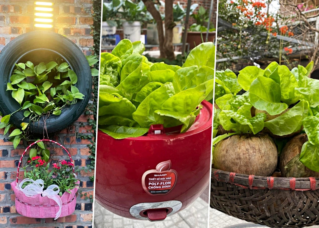 Tận dụng hết rác ở nhà, chị Lan Anh xin, mua lại những vật dụng bỏ đi, rác nhà bếp của hàng xóm. Sau này, thấy chị trồng rau củ thành công trên vật liệu tái chế, nhiều người tự nguyện cho, tặng chị những vật dụng hỏng, không còn sử dụng.