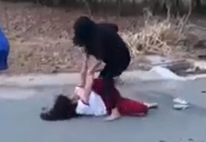 Theo nội dung đoạn clip, hai nữ sinh vật lộn đánh nhau tại khu vực đất trống, trong đó một người mặc quần áo màu đen, người mặc đồng phục được cho là học sinh Trường Tiểu học – THCS - THPT Ngô Thời Nhiệm (phường Hòa Phú, TP Thủ Dầu Một).