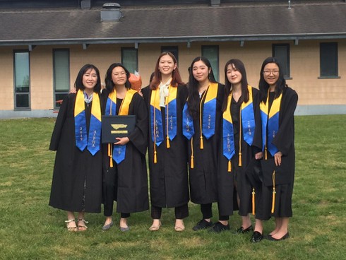 Homi Yamada (ngoài cùng bên phải) trong lễ tốt nghiệp THPT tại trường Alpha secondary school (Canada) |