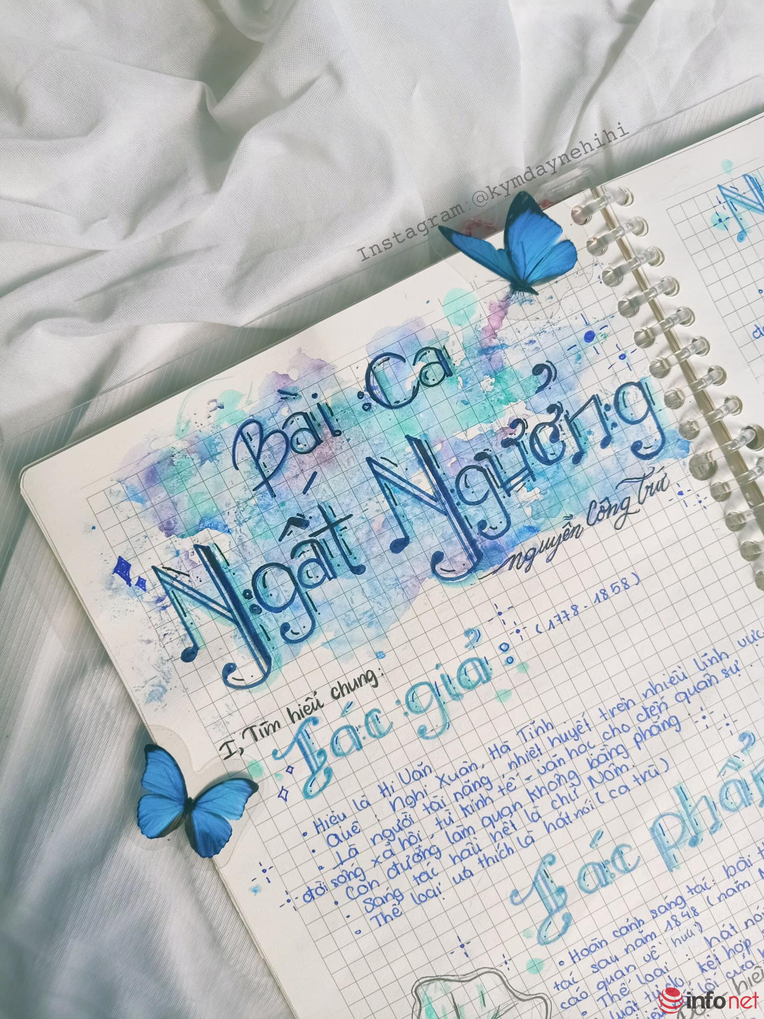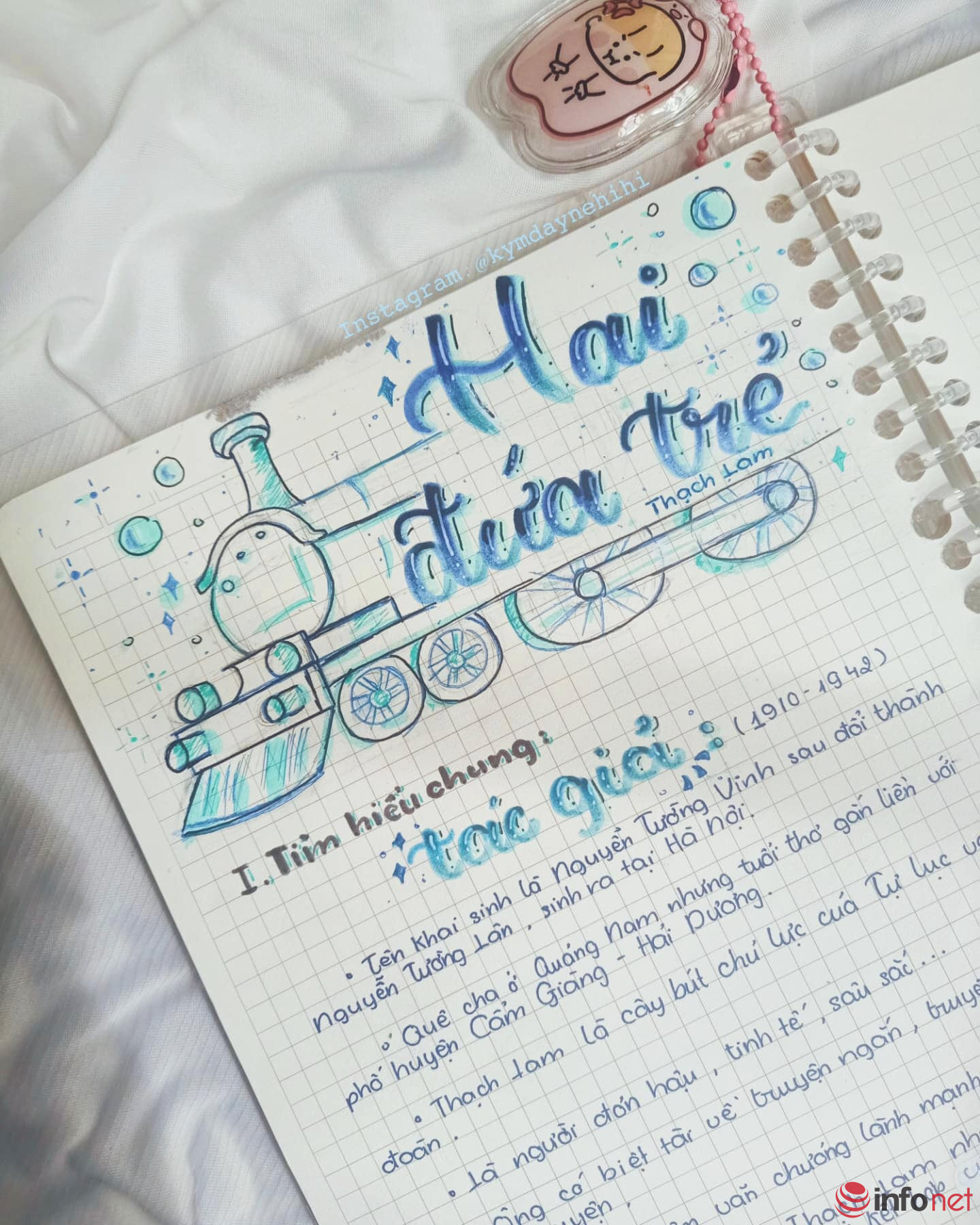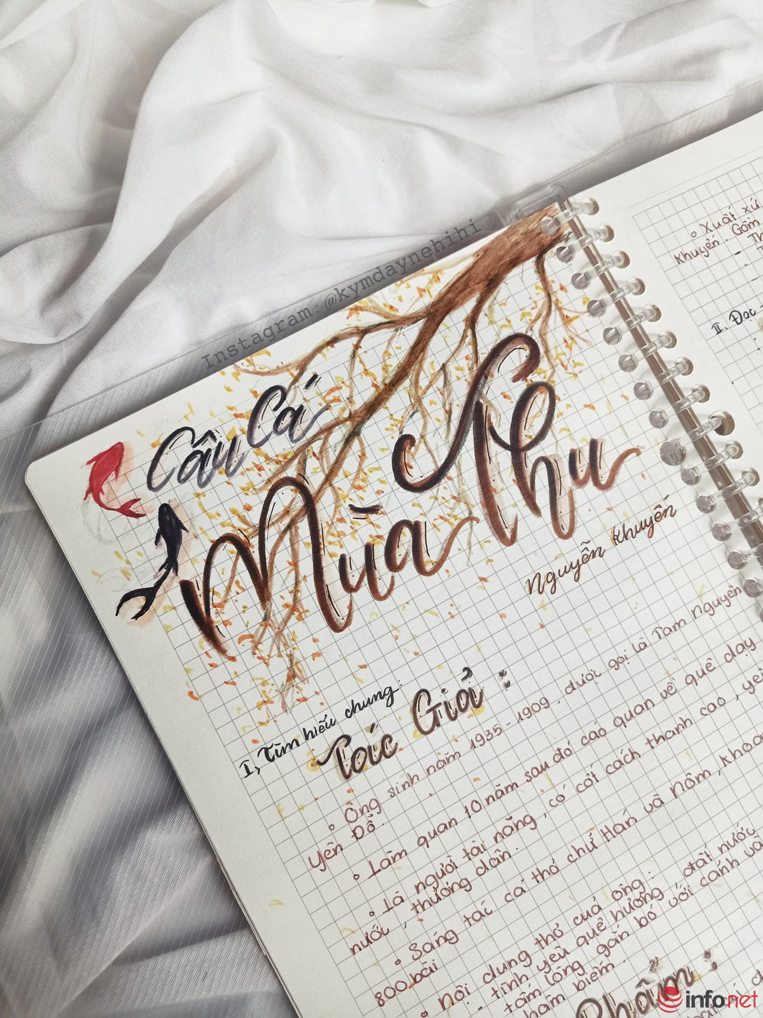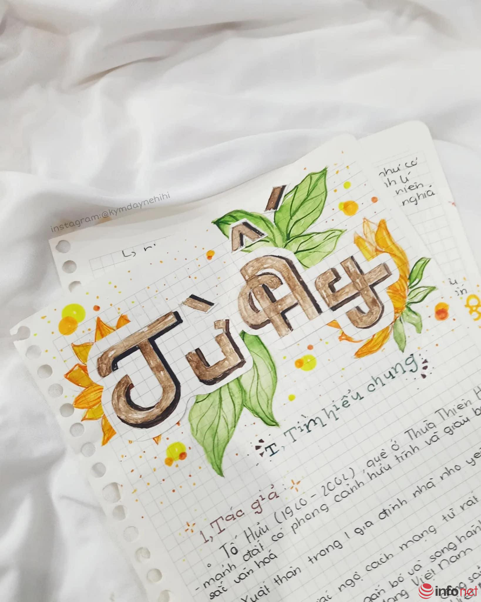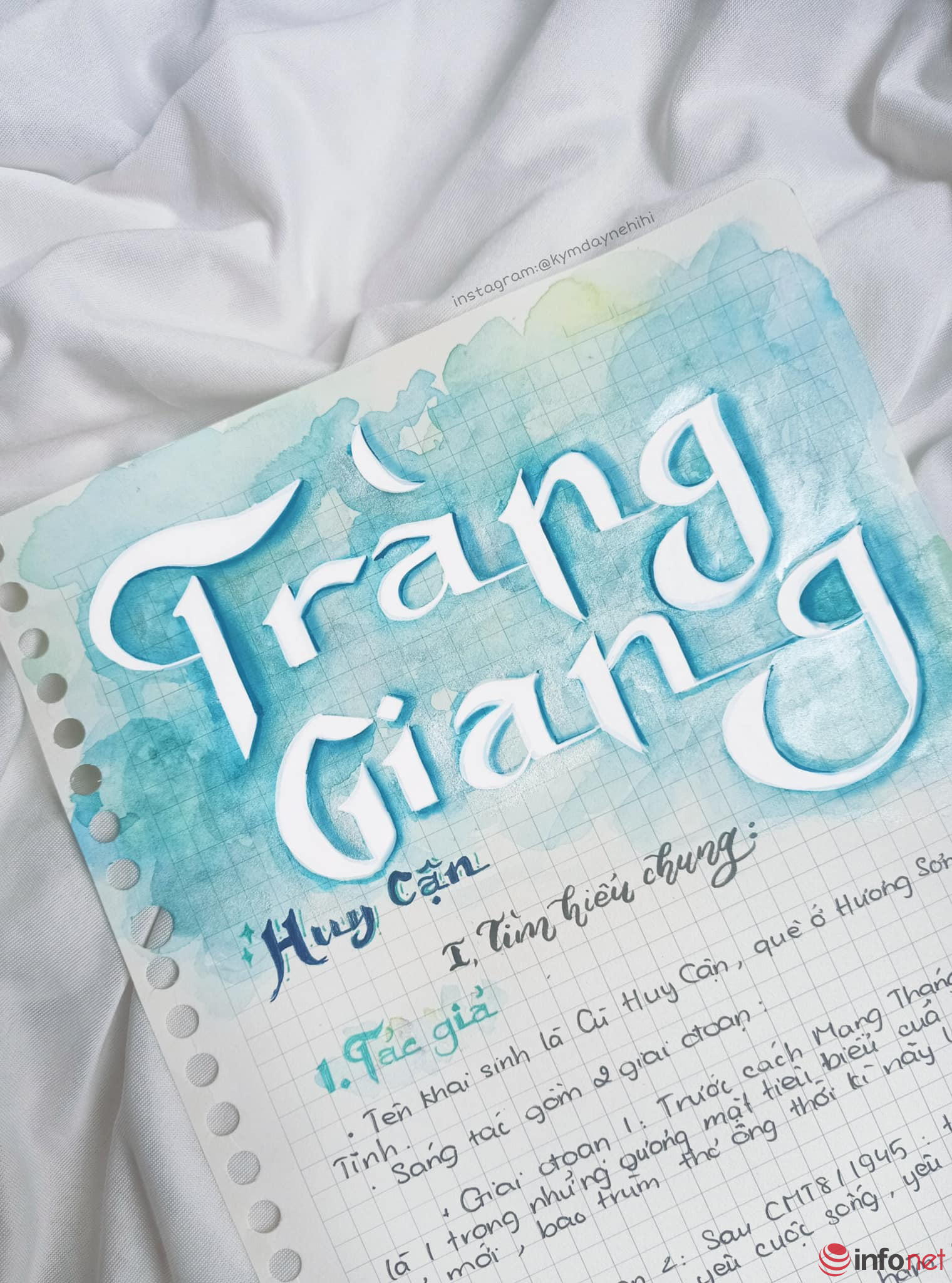 Chia sẻ với Infonet, Hoàng Kim cho biết: "Đa số những tác phẩm này đều là do mình tự lên ý tưởng. Mình trang trí rất nhanh, chỉ tầm 30 phút là xong 1 tiêu đề tác phẩm. Cách học này giúp mình yêu thích môn Ngữ văn hơn và nhớ kiến thức lâu hơn".