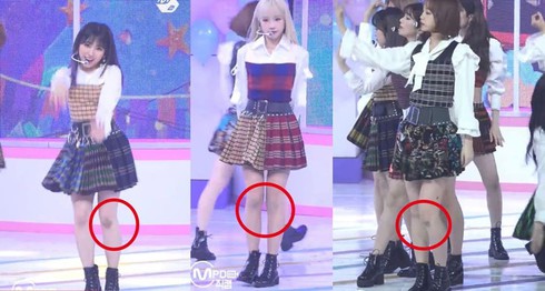 Vết bầm tím lớn trên đầu gối các thành viênIZ*ONE |