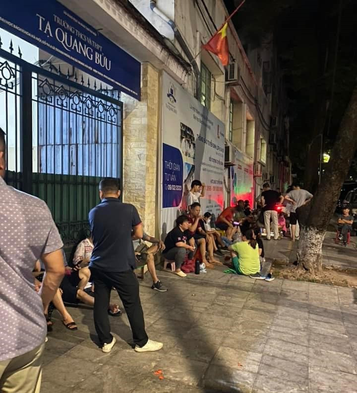 Theo thông báo của Trường THCS và THPT Tạ Quang Bửu, thời gian tiếp nhận hồ sơ nhập học lớp 10 từ 8h ngày 5/7 và nhà trường sẽ dừng nhập học khi đủ chỉ tiêu. Song từ 23h ngày 4/7, một số phụ huynh đã đến tụ tập xung quanh cổng trường.