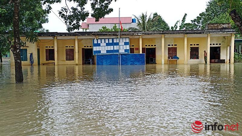 Theo ghi nhận của PV Infonet vào chiều 30/9, tại thôn Kén, xã Tượng Sơn, huyện Nông Cống (Thanh Hóa) đang bị nước dâng cao cô lập, chia cắt với bên ngoài. Học sinh nơi đây cũng phải nghỉ học ở nhà.