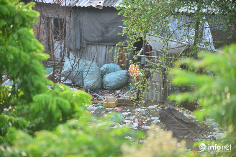 Khu dân cư tạm dưới chân cầu Long Biên phải đối diện với hàng nghìn loại rác thải mỗi khi bước ra khỏi nhà. |