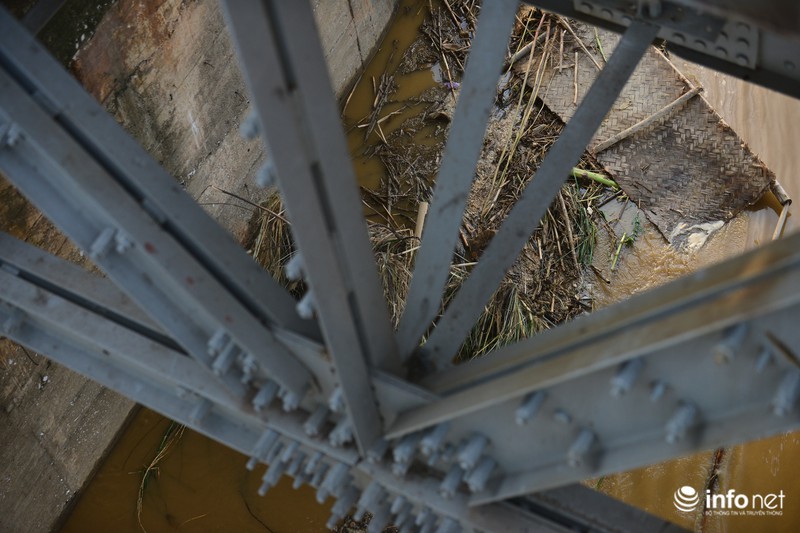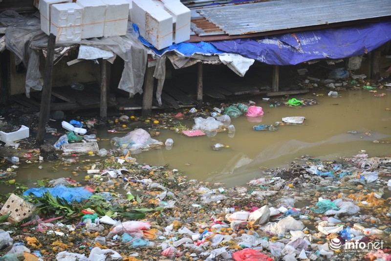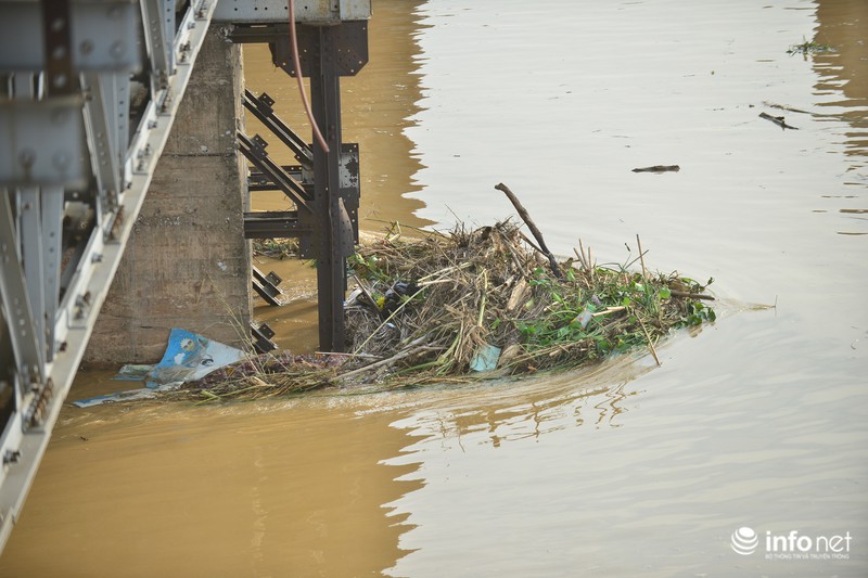 Dưới chân cầu Long Biên, các loại rác thi nhau đọng lại vây hãm chân cầu. |