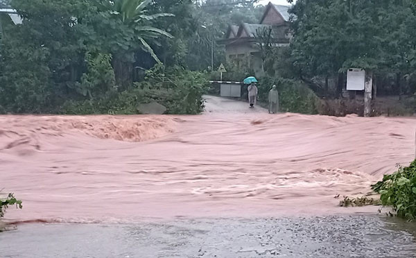 Nước sông Sepon đang dâng cao khiến một số đập tràn, cầu tại xã Thuận và xã Thanh (huyện Hướng Hóa) bị ngập sâu.