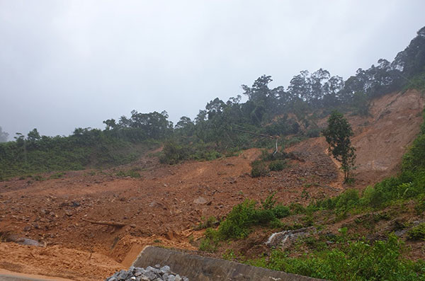 Trên tuyến đường Hồ Chí Minh đoạn km169+100 tại thôn Cựu (xã Hướng Lập, huyện Hướng Hóa) tiếp tục bị sạt lở và các phương tiện đi lại gặp khó khăn, nguy hiểm.