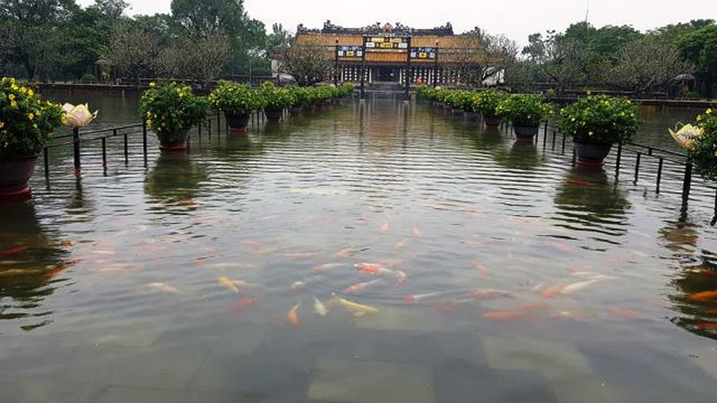 Trong ngày ngày 5/11 và sáng sớm ngày 6/11, do mưa lớn kéo dài khiến cho nước dâng cao nên nhiều du khách đến tham quan Đại nội Huế được chiêm ngưỡng nhiều đoàn cá chép cảnh trong 2 ao lên trên cầu Trung Đạo (Đại nội Huế) tung tăng bơi lội.