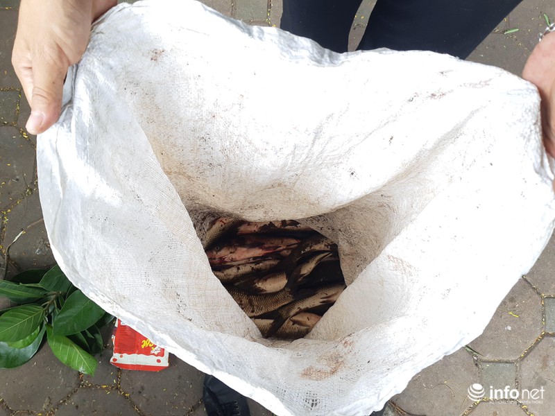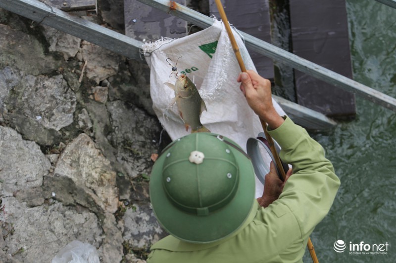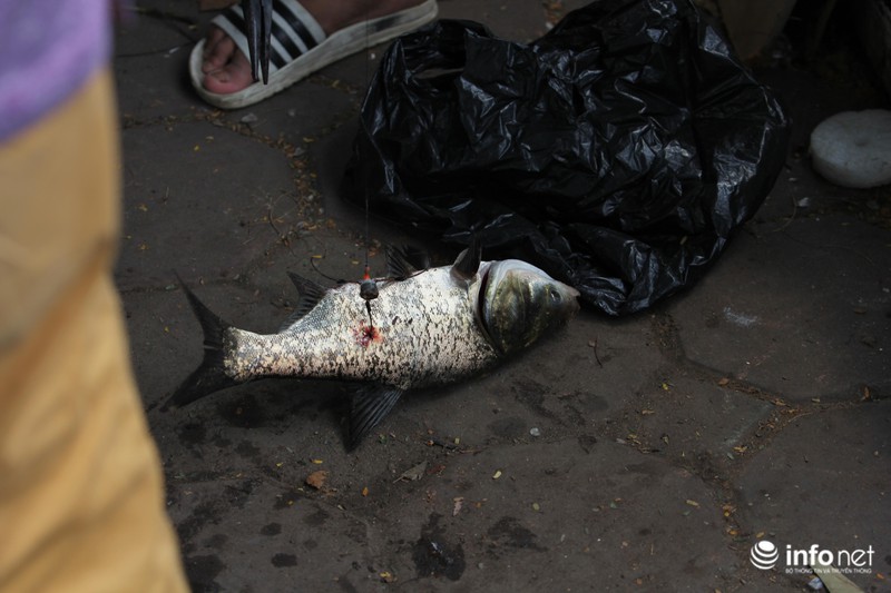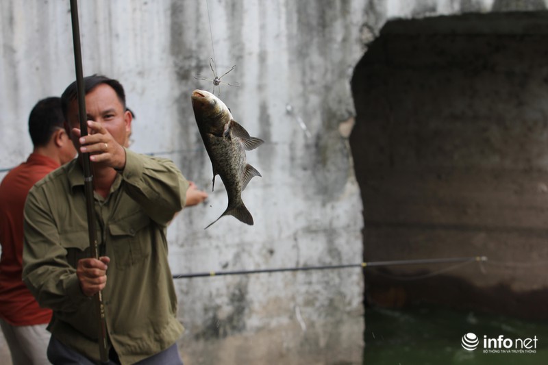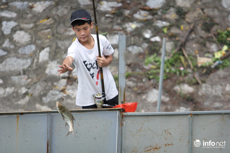 Anh Thế ở Cầu Giấy, Hà Nội cho biết:"Do đợt mưa lớn kéo dài vài hôm, cộng thêm việc xả nước từ Hồ Tây ra, chính vì thế cá đi theo rất nhiều. Tranh thủ ngày nghỉ lễ nên chúng tôi rủ nhau ra đây câu”.