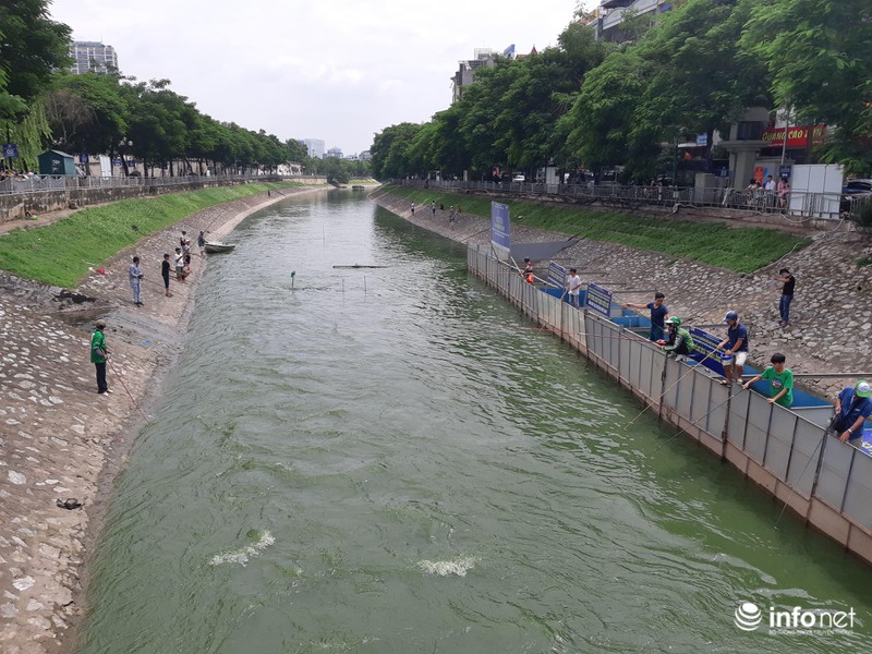 Sau đợt mưa kéo dài do ảnh hưởng của cơn bão số 4, nước sông Tô Lịch chuyển sang màu xanh thay vì màu đen kịt như mọi ngày. Nhiều cần thủ ra buông cần tại đây và cũng dễ dàng kiếm được hàng chục kg cá chỉ sau vài giờ.