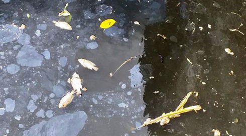Tình trạng cá chết nhiều trên sông Vinh. |
