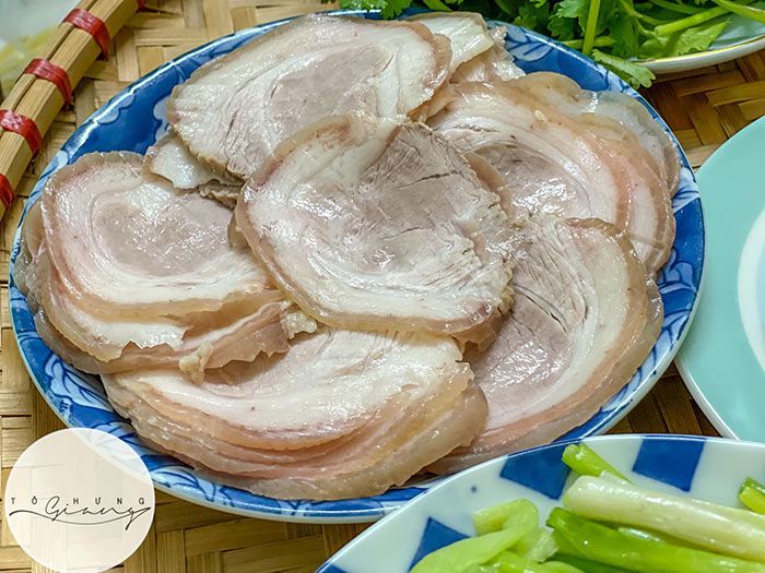 - Phần nước luộc thịt dùng để làm nước dùng, nếu phần nước ít thì có thể thêm nước trắng vào.