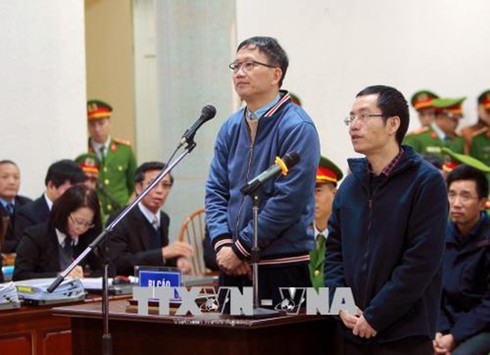 Trịnh Xuân Thanh (trái) và Lương Xuân Hòa đối chất tại tòa. (Ảnh: TTXVN) |