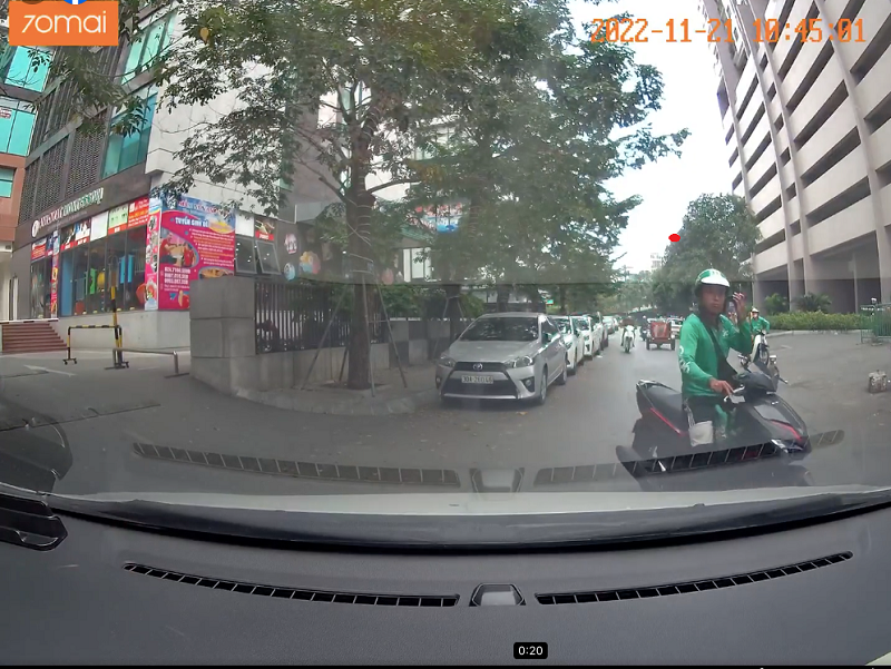 Theo đoạn clip đang lan truyền trên mạng xã hội, một chiếc xe ô tô di chuyển rẽ trái vào một tòa chung cư. Lúc chuẩn bị rẽ, tài xế phải dừng lại khi thấy một chiếc xe máy đi tới, trên tay người đi xe máy còn cầm điện thoại. Tiếp đó tài xế ô tô tỏ ý nhắc nhở người lái xe máy không chú ý quan sát khi ô tô của mình chuẩn bị rẽ trái. Vụ việc được chính camera hành trình của xe ô tô ghi lại.