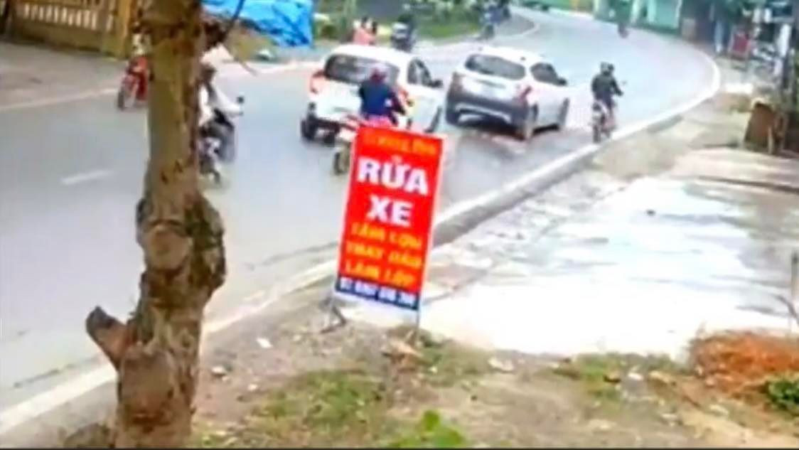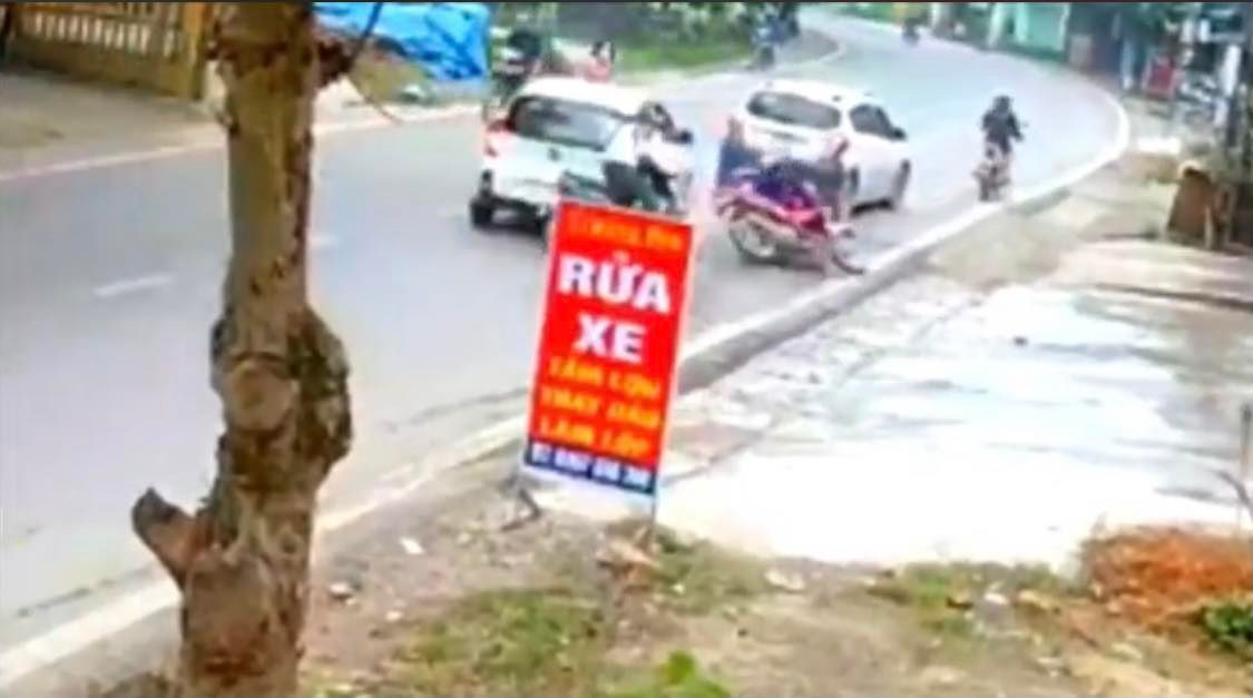 Kết quả là một chiếc xe ô tô phía sau phải phanh gấp để tránh va chạm, còn 2 xe máy do không làm chủ được tốc độ đã đụng trúng đuôi xe ô tô và ngã xuống đường.