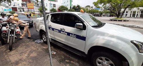 Xe bán tải vi phạm giao thông dán dòng chữ "An ninh miền Bắc" |