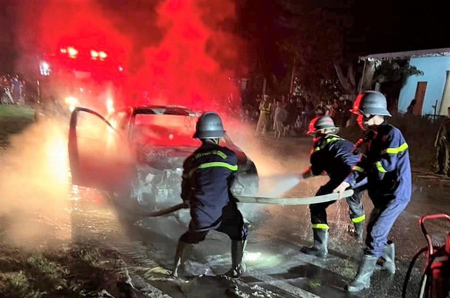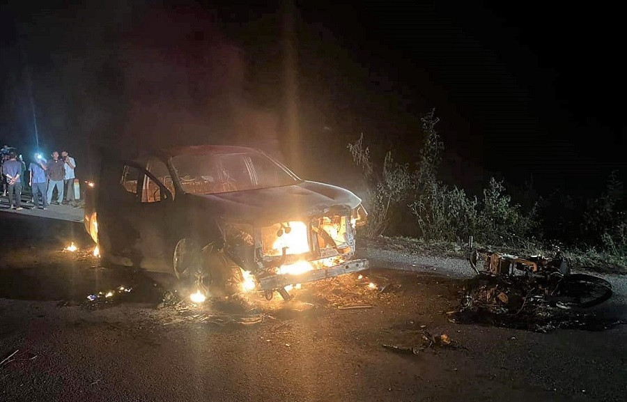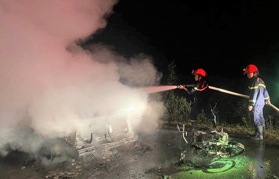 Cú va chạm khiến cả hai phương tiện bốc cháy dữ dội. Lực lượng Cảnh sát PCCC & CNCH Công an tỉnh Nghệ An đã nhanh chóng có mặt tại hiện trường để triển khai phương án cứu hộ nhưng cả 2 xe đã bị cháy hoàn toàn.