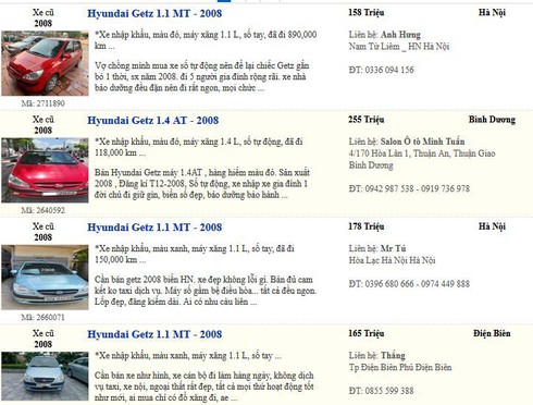 Dù đã ngưng nhập khẩu từ năm 2011 nhưng trên thị trường hiện nay, những chiếc xe Hyundai Getz cũ đời sau 8-10 năm sử dụng vẫn được rao bán khá nhiều với giá dao động từ 160-250 triệu đồng. Mức giá xe cũ này giảm hơn 50% so với giá mua mới nguyên gốc của xe trước đó.