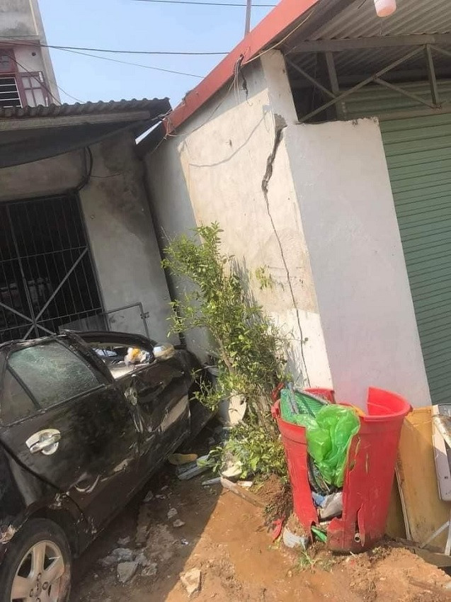 Gần như ngay lập tức sau đó một chiếc xe ô tô màu đen sầm sập lao tới. Chiếc xe mất lái, lao với tốc độ kinh hoàng vào nhà dân ven đường.